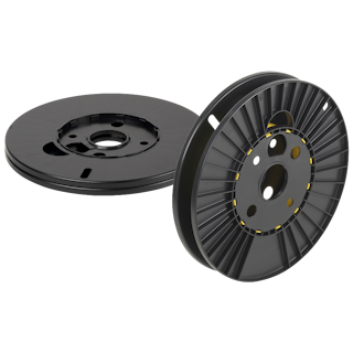 | Flange Ø | Barrel Ø | Central bore Ø | Width | Winding width | Flange thickness | Winding- volume | Central bore Ø tapered part | Drive- hole/pin | Drive- distance |