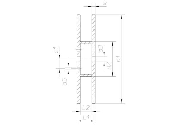 d1 [mm] | d2 [mm] | d3 [mm] | L1 [mm] | L2 [mm] | S [mm] | V [cm³] | d4 [mm] | d5 [mm] | E1 [mm] |