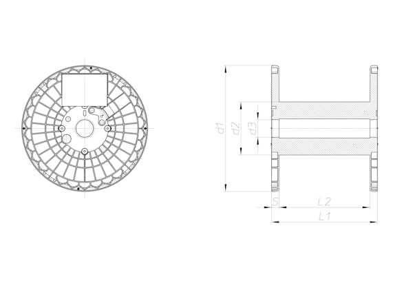 Flange Ø | Barrel Ø | Central bore Ø | Width | Winding width | Flange thickness |