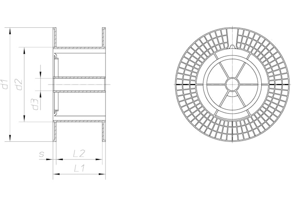 | Flange Ø | Barrel Ø | Central bore Ø | Width | Winding width | Flange thickness |