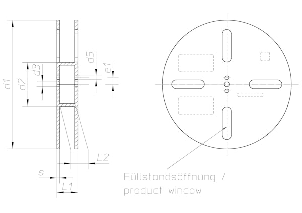 d1 [mm] | d2 [mm] | d3 [mm] | L1 [mm] | L2 [mm] | S [mm] | V [cm³] | d4 [mm] | d5 [mm] | E1 [mm] | |