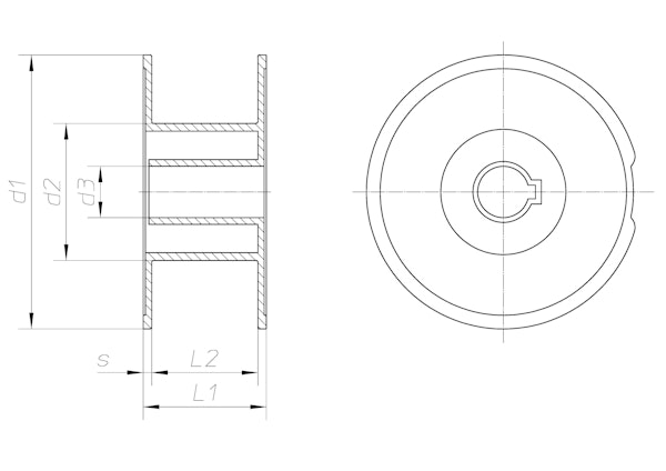 d1 [mm] | d2 [mm] | d3 [mm] | L1 [mm] | L2 [mm] | S [mm] | V [cm³] | d4 [mm] | d5 [mm] | E1 [mm] |