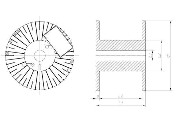 Flansch Ø | Kern Ø | Zentral-Bohrung Ø | Breite | Wickelbreite | Flanschdicke |